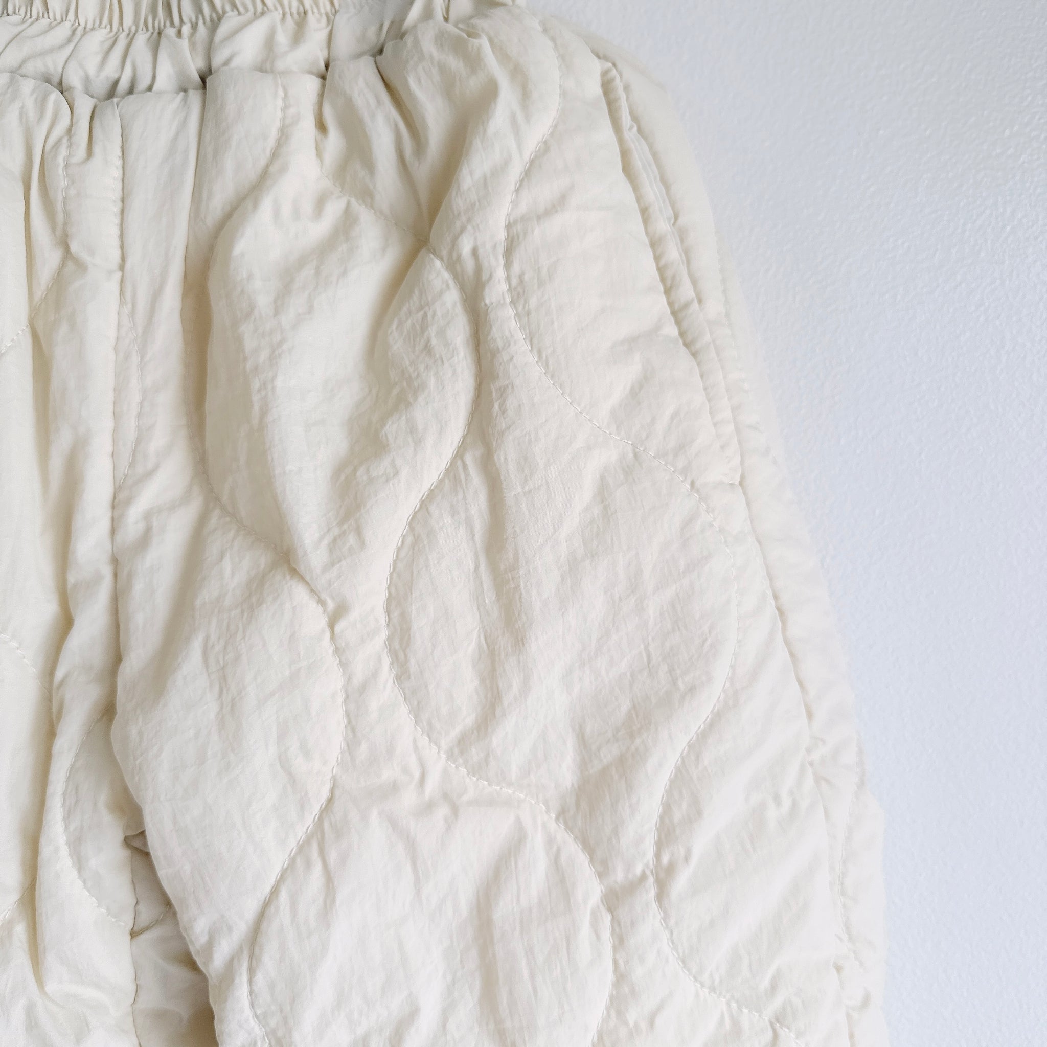 Smooth padded pants with elastic waistband and nylon lining to keep their legs warm and dry from snow.